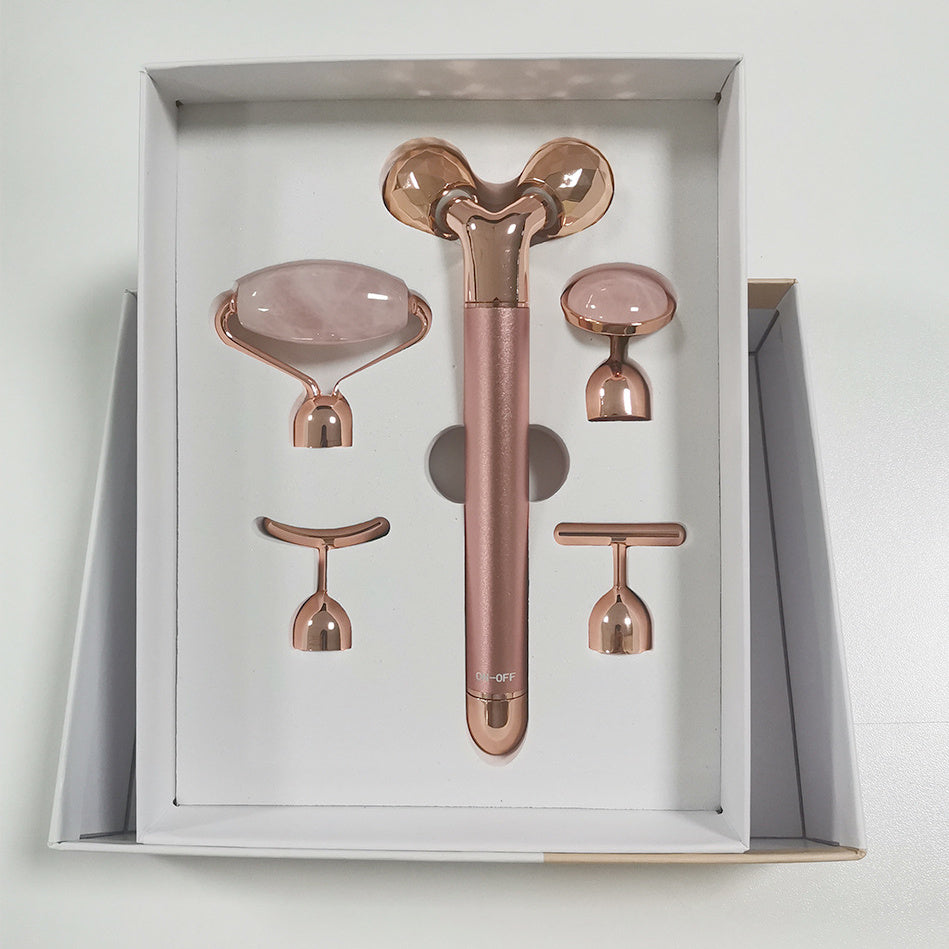 Instruction manual x1, pink flannel bag x1, color box x1, EV jade roller head x1, jade disc head x1, U-shaped beauty head x1, T-shaped beauty head x1